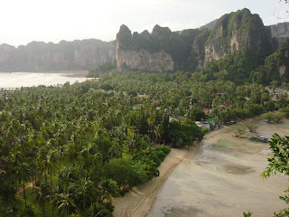 Comenzamos en Railay un paseo hasta el “viewpoint”; por debajo de este, están las reuniones de uno de los sectores, así que las vistas son parecidas. Ese día cenamos dos veces, por que con la comida de allí te entra hambre a la hora y media. Lo bueno es que puedes comprar comida a cualquier hora. Luego fuimos al concierto del hermano de una de ellas y bueno …nos liamos un poco.A la mañana siguiente nos llevaron a un lugar llamado Spring Waterfall, es un sitio muy recomendable que se sale de los paquetes turísticos y ves un poco la vida de esta gente. Tuvimos las lagunas para nosotros solos las mas oscuras son de aguas termales a 40º. Después de unas zambullidas nos llevaron a una casa de comidas donde comimos 5 personas por 4€ y encima te podías acercar a repetir a la cocina. Sopa, brotes, soja y algo de pollo frito.